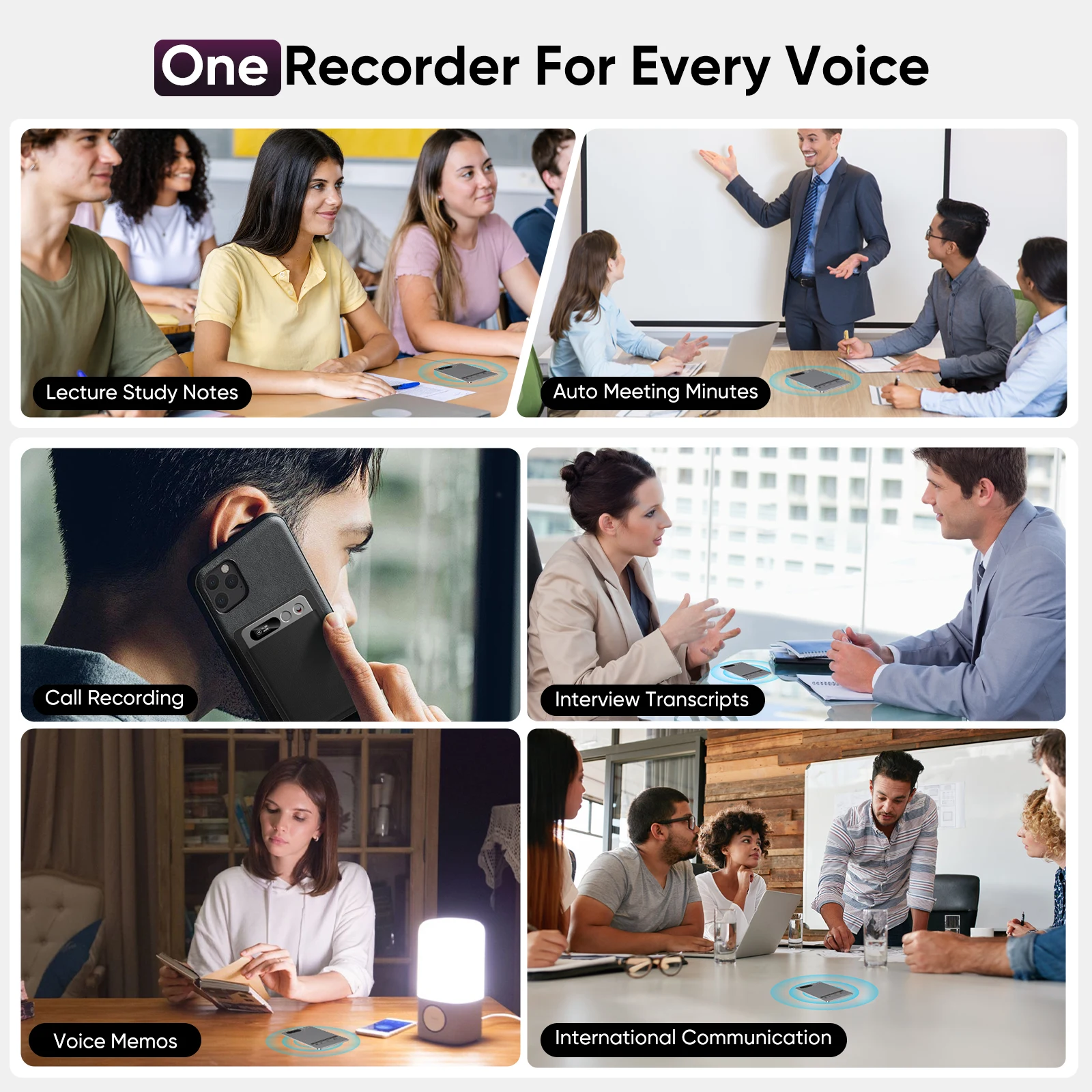 AI Voice Recorder 118 Languages ChatGPT-4 App Phone Call Mini Audio for Meetings, Lectures, Calls, AI Transcription Transcribe Summarize 64GB Memory Note Recorder