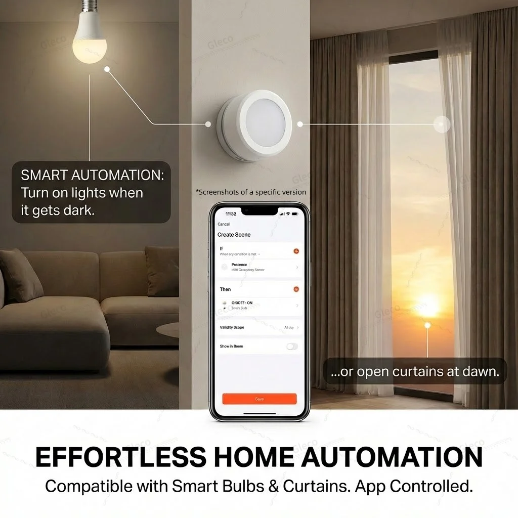 This Zigbee smart light sensor detects ambient light (Lux) in real time and records brightness changes . By working with smart lights, curtains, and automation scenes, it helps your home